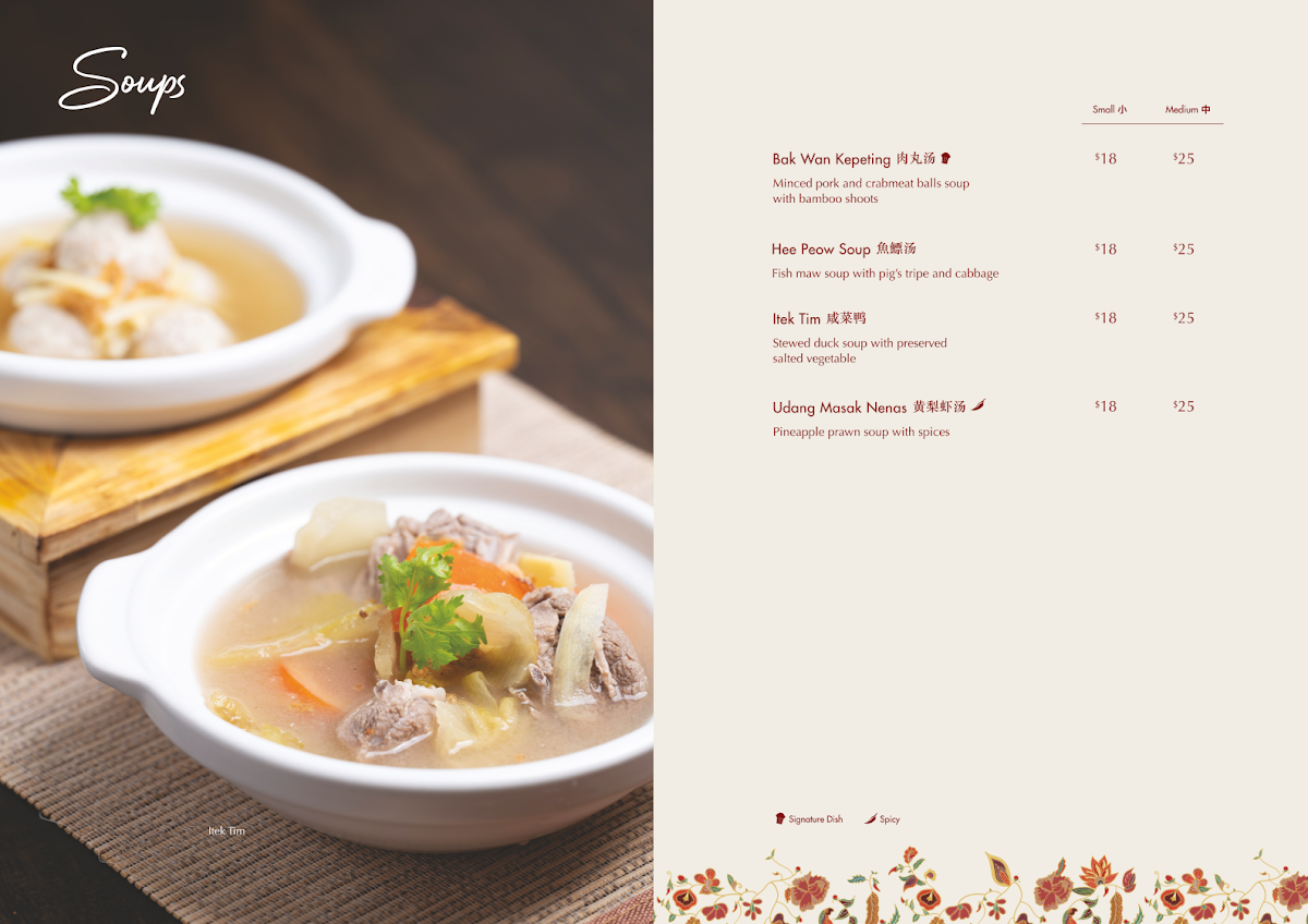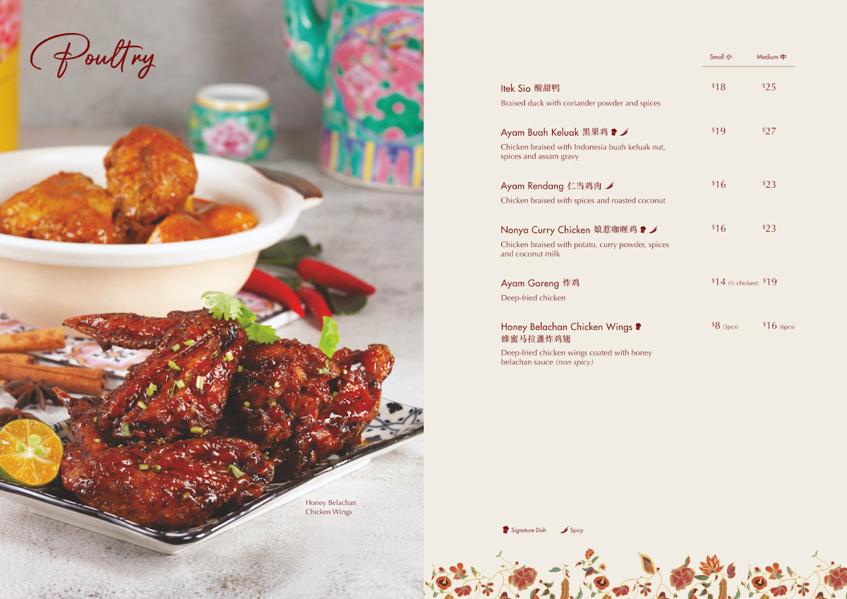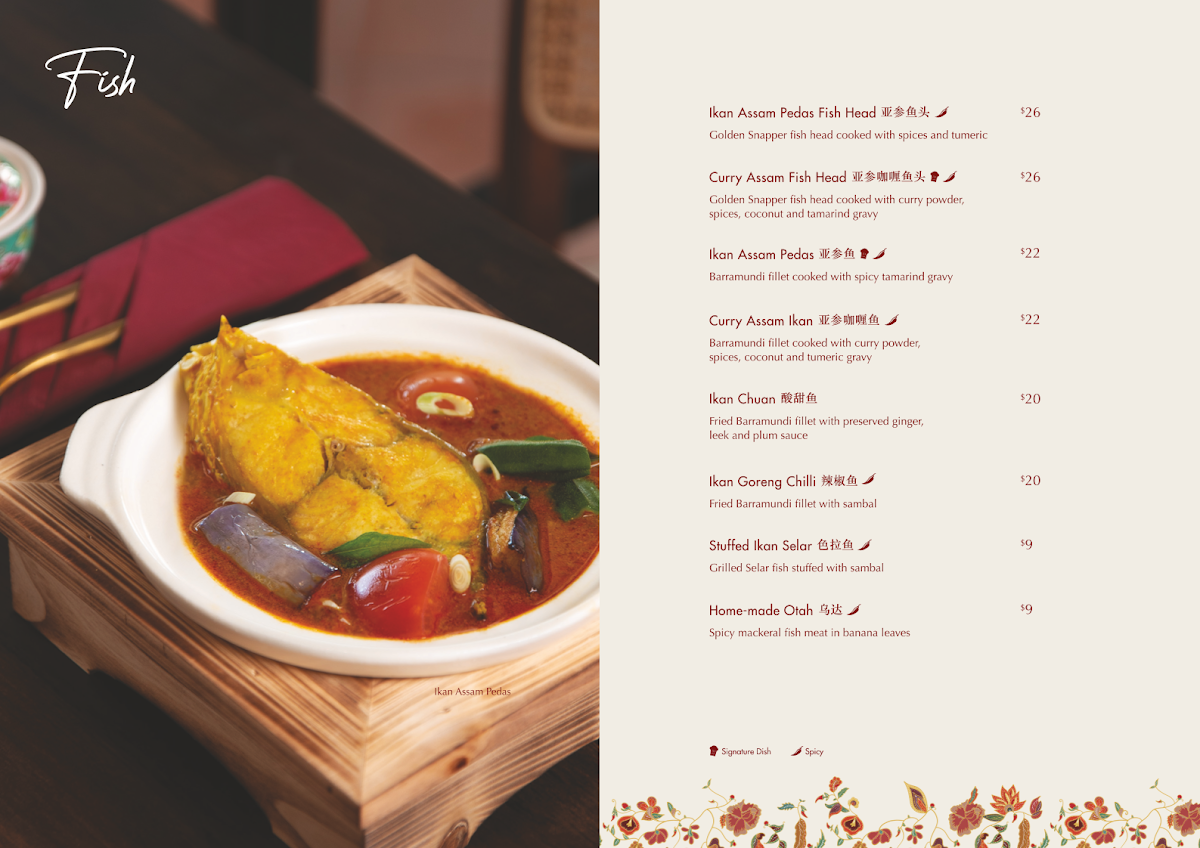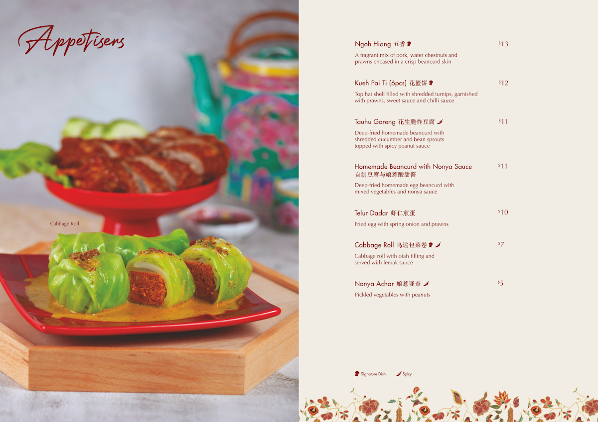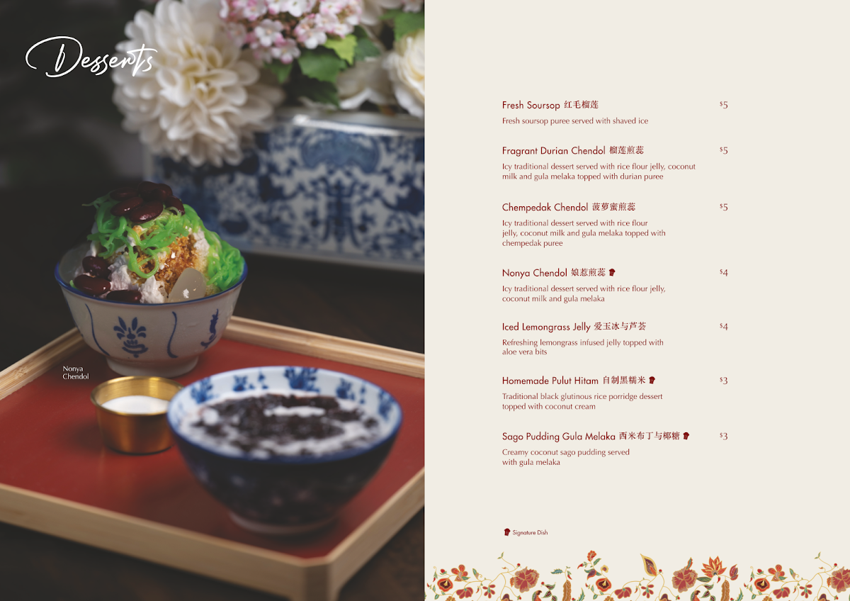 Guests rave about signature dishes like the Ayam Buah Keluak and Babi Pongteh, both renowned for their hearty, well-balanced flavors. The Kueh Pie Tee and Assam Fish also receive high praise, delivering exquisite combinations of textures and tastes that showcase true Nyonya flavours. For dessert, the Chendol is a must-try, offering a refreshing end to the meal.